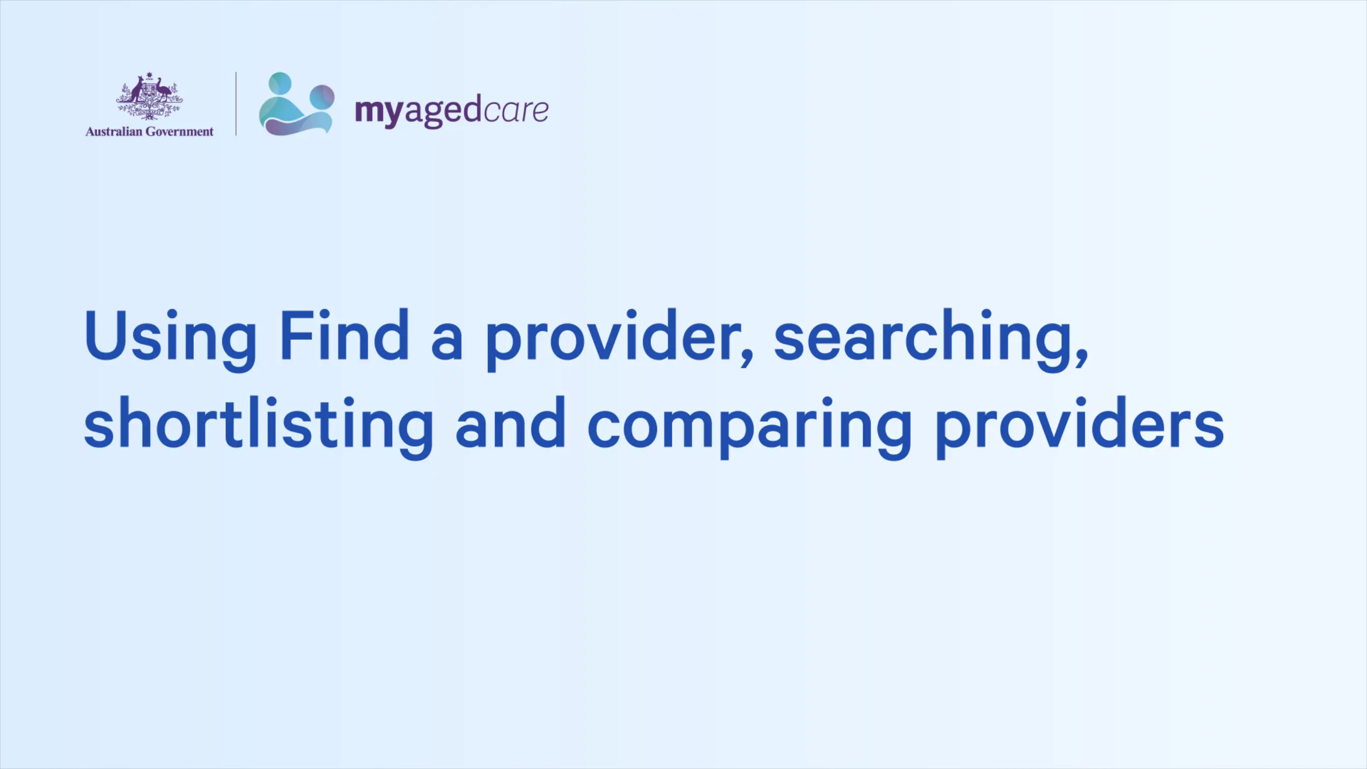 Watch the video below to learn how to search for, shortlist, and compare aged care providers that match your needs and preferences.