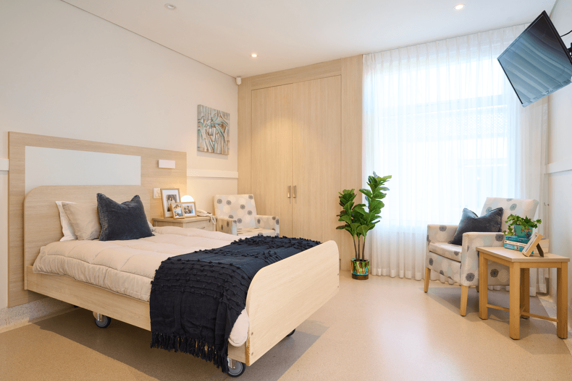 Fully furnished private room with private ensuite bathroom and air conditioning. This wing offers secure dementia care accommodation.