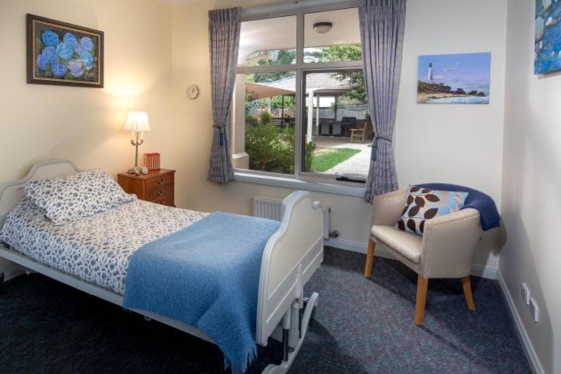 This generous and bright 14 sqm private ensuite room has high quality furnishings including an adjustable bed, arm chair, over-the-bed table, a wardrobe and drawers for storage and soft furnishings like curtains and bedding. The bathroom consists of a toilet, wash basin, shower, vanity cabinet and mirror. Residential amenities include an easy-to-use 24 hour nurse call system.