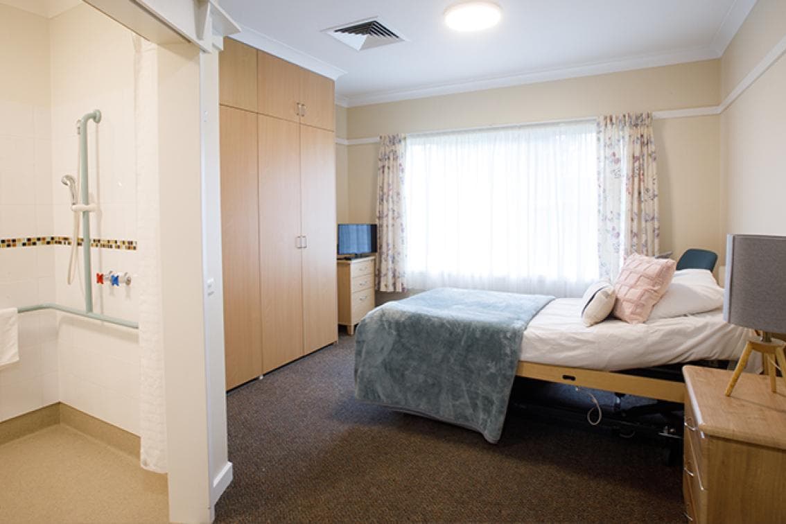 HammondCare offers a range of accommodation alternatives that reflect our approach to create a feeling of home and belonging. Residents are encouraged to bring their favourite furniture, artwork, cushions, personal keepsakes and items to give the room a personal touch and make the room feel more like home. Each of the bedrooms at HammondCare Horsley has a bed with timber finishes, a bedside table, a comfortable armchair and a built-in wardrobe. The generously appointed ensuite features an easy-access toilet, basin and mirror unit, and a walk-in shower. Residents enjoy picturesque views over beautifully landscaped gardens, as well as abundant natural light through large framed windows.With wide doorways and supportive equipment on hand, Horsley has been thoughtfully designed to provide optimum support to residents, enabling them to access all areas of the home with ease.
