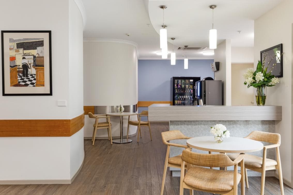 Sharing with just one other, companion rooms at Estia Health Victoria Heights are light and spacious. These rooms feature adjustable beds, privacy curtains, generous built-in wardrobes, chests of drawers with lockable drawers, television, corner unit station, central heating and cooling, call-bells, and telephone and internet connections. Some rooms offer courtyard views. Shared with the neighbouring room, the shared bathrooms include open shower with ample space for supportive equipment, exhaust fan and supportive railing.