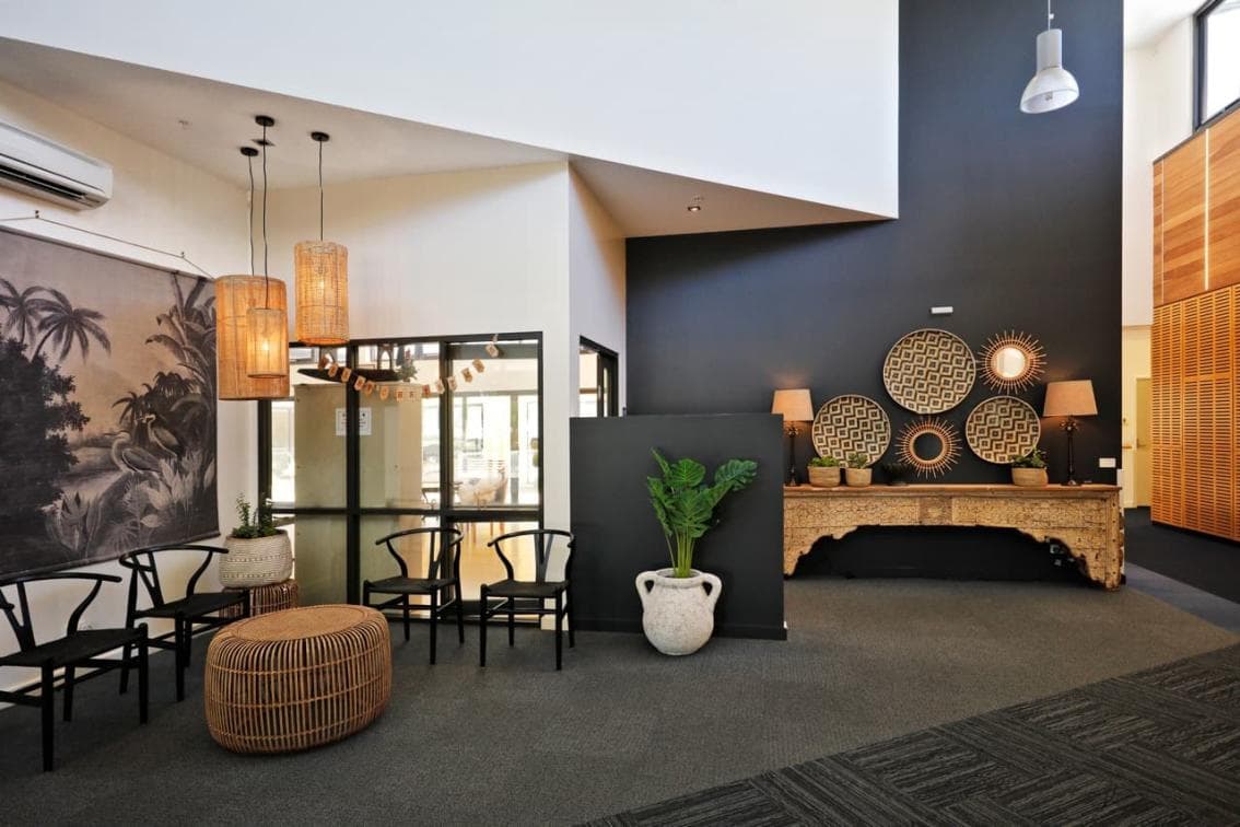 Each room has a view over gardens, small courtyards or One Mile Creek. To ensure that residents feel a sense of home and belonging, all rooms include heating, cooling, extensive wardrobe storage, display shelving, bedside table, electric bed and TV and a private ensuite. Each room has access to a small common lounge and kitchenette, the dining room, recreation rooms, library and chapel. To ensure peace of mind, 24hr access to a registered nurse is also included as well as smoke and heat detectors throughout the facility