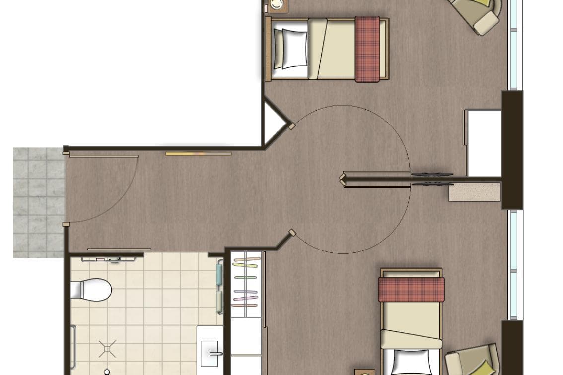 Opened in August 2014, our boutique aged care suites have been thoughtfully designed to maximise amenity for our residents, whether it be views, access to sunlight and natural ventilation, private balconies and additional internal room area and furniture items. The interior design, furniture, fittings and equipment have premium finishes with a warm and luxurious feel. Each suite is fully furnished and has designer-selected décor and fittings. We encourage residents to bring their own furniture, memorabilia and items to make their room space feel as homely and comfortable as possible. A photo wall and room gallery space has been allocated to each room to facilitate comfort and promote personalisation. The bedrooms are equipped with: electronic adjustable bed; arm chair; bedside table with lamp; locked personnel drawer; built-in wardrobe; nurse call button; flat screen TV; telephone connection and handset; wifi and Foxtel enabled; reverse-cycle air conditioning; premium sheer curtains with blackout fabric backing; doors are able to be locked for securityOur Balcony Corner Suites are generously sized with private ensuite bathroom (5m2) and flows onto a private balcony. Each private bathroom is fitted with an individual vanity with personal built in lighting; heat lamps and anti-slip tiles and nurse call button.