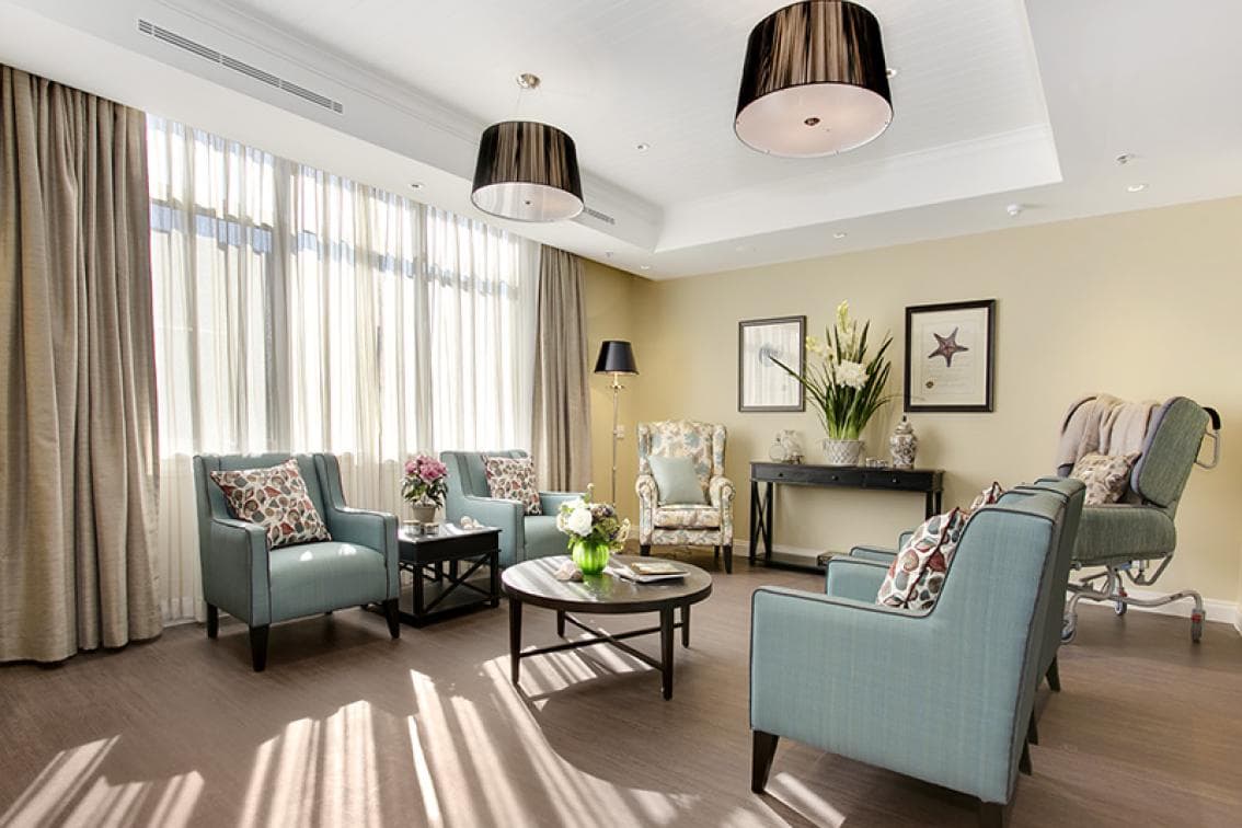 Opened in August 2014, our boutique aged care suites have been thoughtfully designed to maximise amenity for our residents, whether it be views, access to sunlight and natural ventilation, private balconies and additional internal room area and furniture items. The interior design, furniture, fittings and equipment have premium finishes with a warm and luxurious feel. Each suite is fully furnished and has designer-selected décor and fittings. We encourage residents to bring their own furniture, memorabilia and items to make their room space feel as homely and comfortable as possible. A photo wall and room gallery space has been allocated to each room to facilitate comfort and promote personalisation. The bedrooms are equipped with: electronic adjustable bed; arm chair; bedside table with lamp; locked personnel drawer; built-in wardrobe; nurse call button; flat screen TV; telephone connection and handset; wifi and Foxtel enabled; reverse-cycle air conditioning; premium sheer curtains with blackout fabric backing; doors are able to be locked for securityAll Deluxe suites have private ensuite bathrooms which are generous in size (5m2) and are fitted with an individual vanity with personal built in lighting; heat lamps and anti-slip tiles and nurse call button.