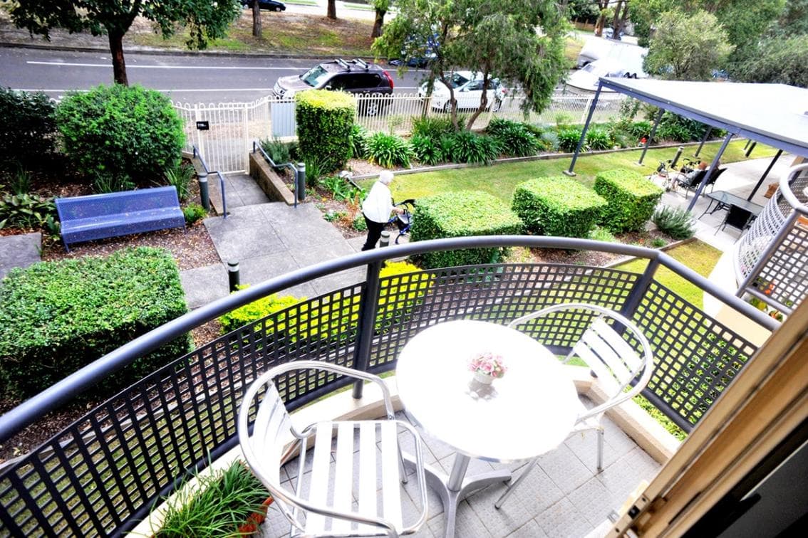 These care suites are located close to common areas and the heart of the aged care centre. These care suites overlook an expanse of pleasing tree foliage and landscaped gardens and are complimented by private balconies that allow quiet reflection and sun therapy. These care suites offer large windows draped with stylish curtains that open to landscaped garden views. Specific features and inclusions provided include private ensuite, electric king single bed, substantive wardrobe, dressing table and mirror, complimentary refrigerator and telephone point, writing desk and flat screen SMART television. All care suites have been renovated with quality fixtures and fittings; are fully carpeted to give that warm homely feel; have contemporary wallpaper features and are fitted with in room air conditioning to allow personalisation of temperature preferences. The generous size of these care suites allows older people to bring their own personal furniture of choice. With garden views and aspects older people can enjoy views of the gardens and quiet neighbourly streetscape.