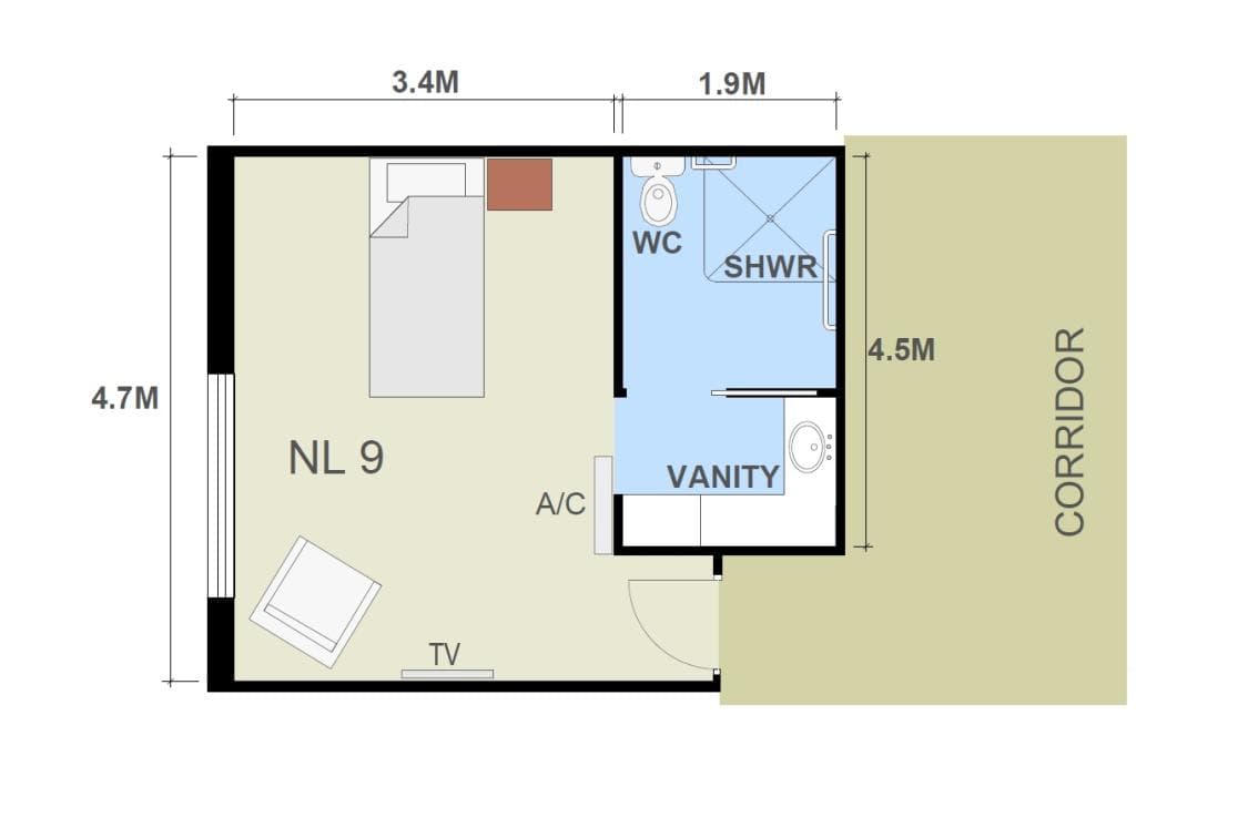 - room, bathroom and communal area furnishings