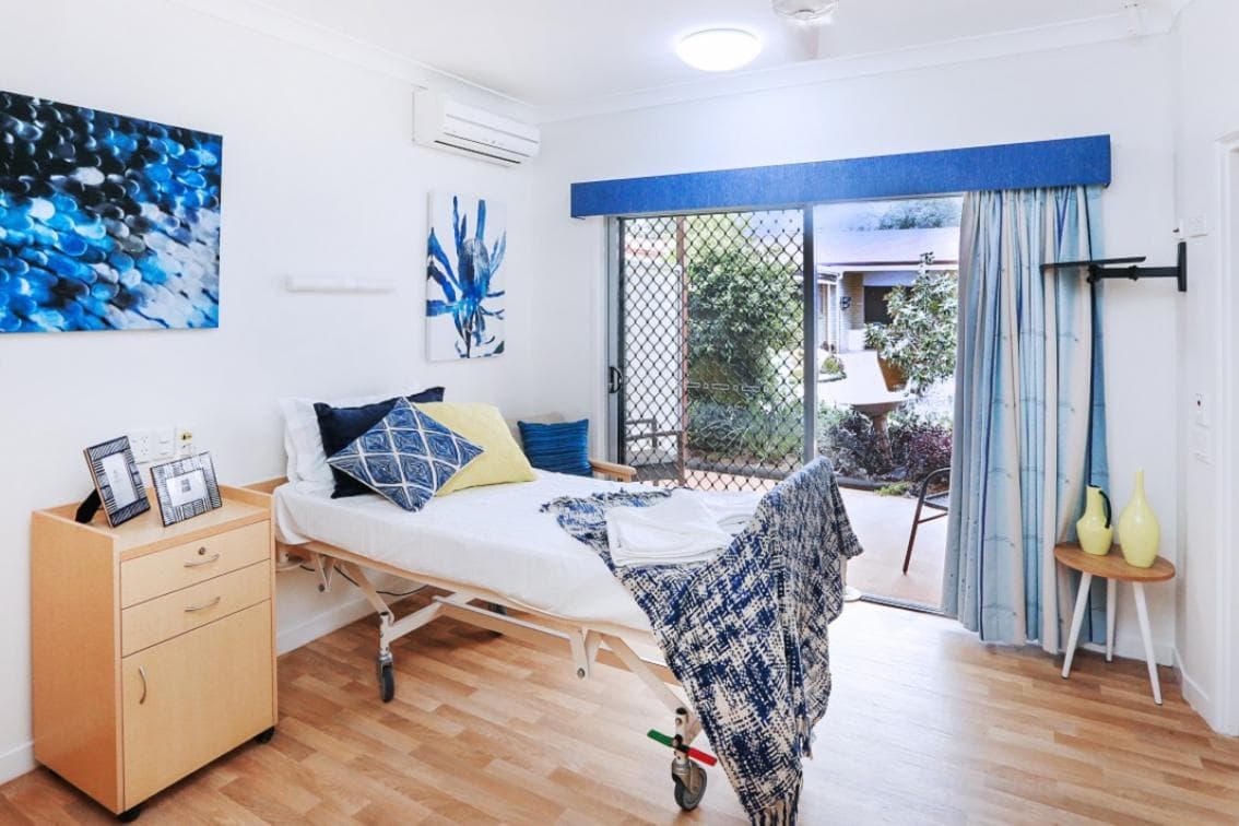 The 13 deluxe accommodation rooms provide single ensuited rooms and open to a covered patio/garden area. All rooms are airconditioned. These newly refurbished rooms are furnished to a high standard with an electric bed, smart TV, cupboards, bedside unit, overbed table, chair, lockable cabinet, quality carpet or vinyl flooring, natural light and windows, curtains, phone point, Foxtel access and nurse call system.