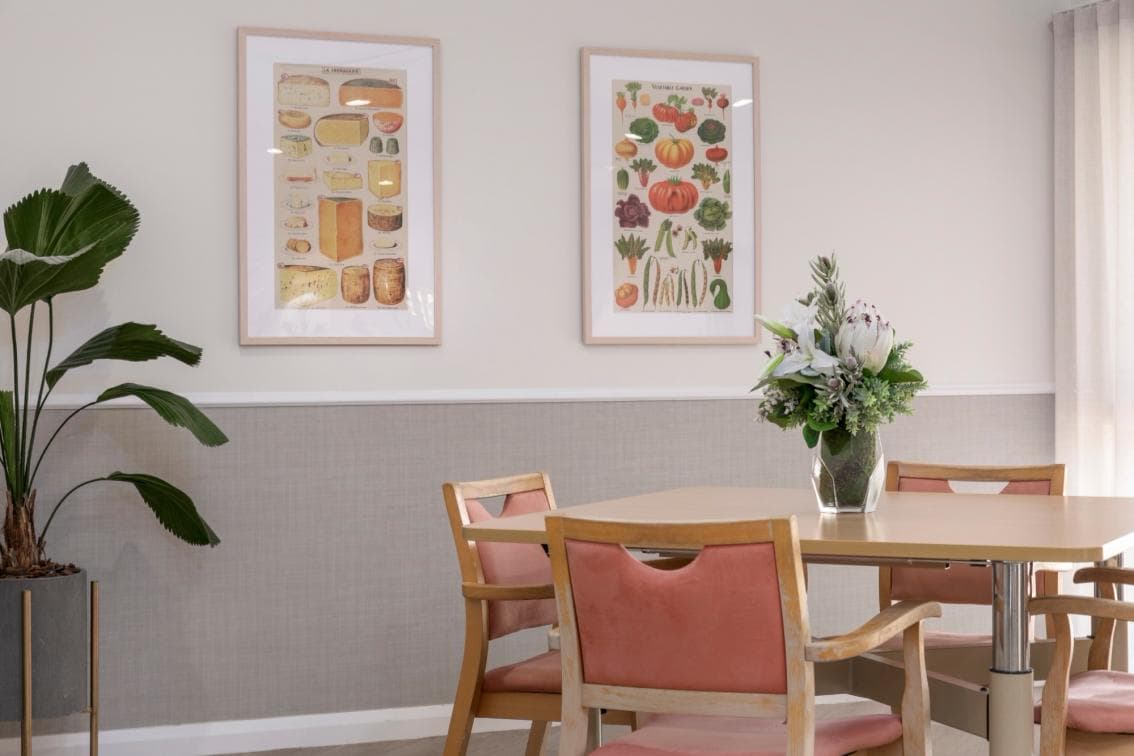 Each private room has been designed with individual comfort in mind, with its own private ensuite, an adjustable electric bed with hotel quality linen, generous storage available in the built-in cupboard for clothing and personal belongings and an individually controlled reverse cycle air conditioning system. Many of the rooms have views over the courtyards and gardens.