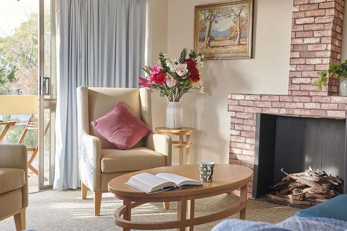 Our Spacious Living Room at Uniting Springwood has been designed for privacy. The room offers home comforts including a bed, bedside table, traditional furnishings and fittings, personal storage and a private ensuite. All of these rooms are in good condition and are well lit.