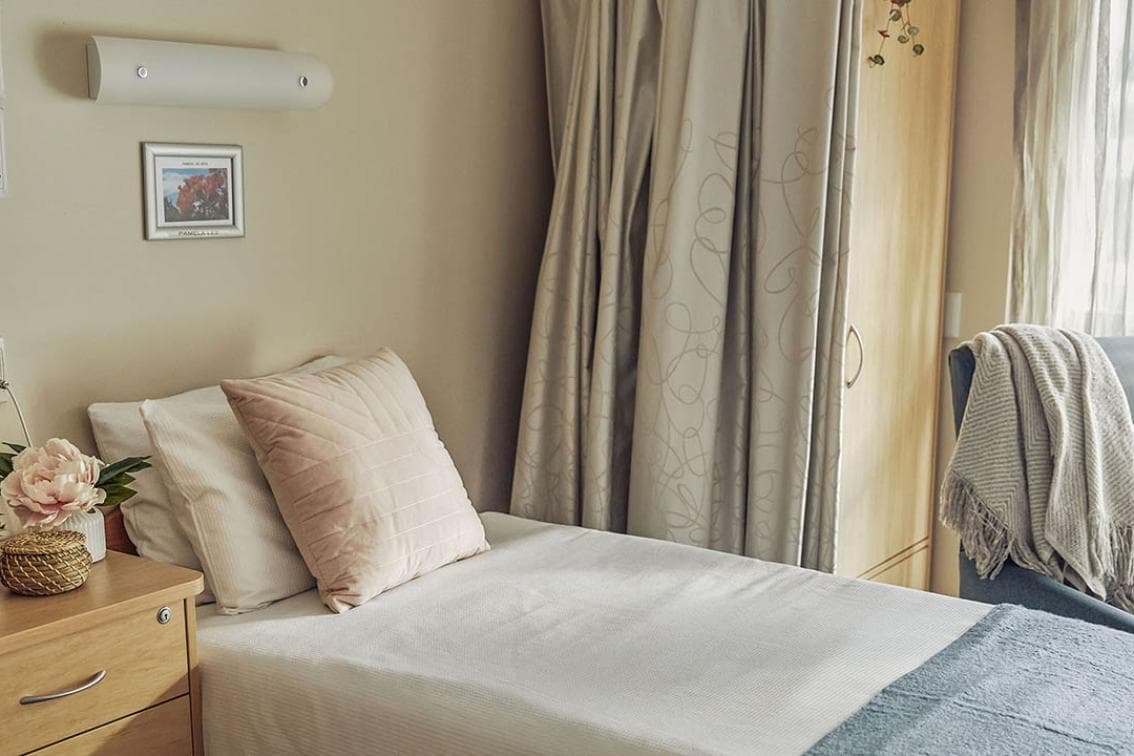 Our Companion Living Room at Uniting Wesley Heights Manly offers home comforts including a bed, bedside table, traditional furnishings and fittings, personal storage and a shared bathroom. Most of these of these rooms in good condition with natural lighting and offer views of Manly and the harbour.