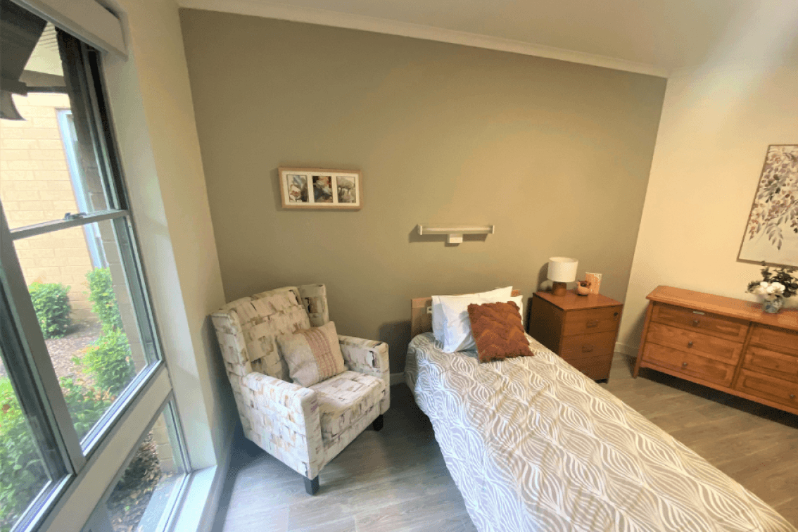 The generously sized room provides residents with extra comfort, offering ample space for a private lounge area and features beautiful garden views. The Deluxe room provides a relaxed environment maintaining a level of independence and privacy to enhance the overall experience.