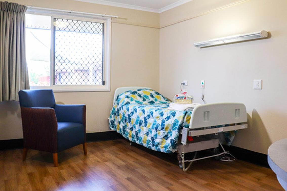 Large, private room with private ensuite with garden views. The room can also accommodate couples in comfort. Low maintenance living with built-in hotel services including laundry and meal services. Room includes a comfortable electric bed, bedside table, large flat screen television, lounge chair, coffee table, wardrobe with lockable drawers as well as split system air-conditioning.