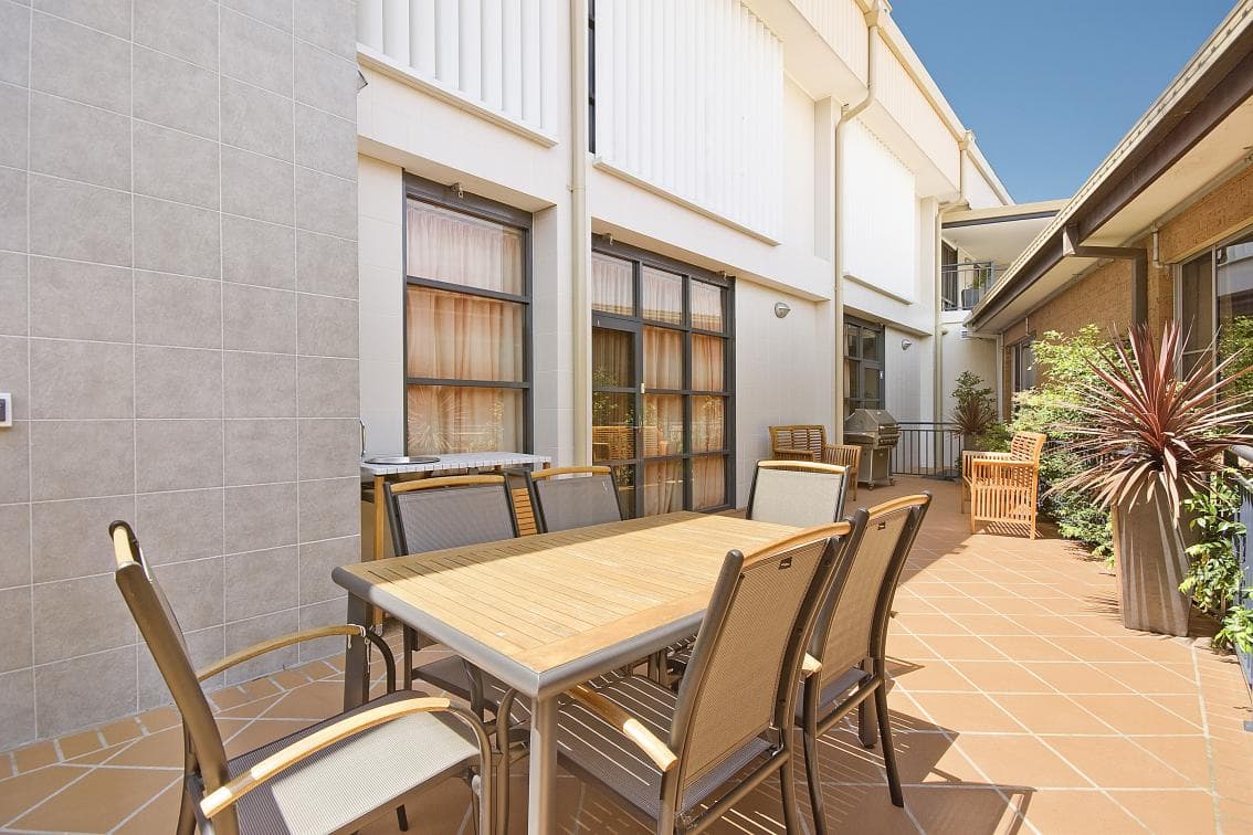 Secured dementia specific wing, ground floor, quiet leafy aspect, private balcony, wall mounted flat screen plasma TV, wireless internet, individual reverse-cycle airconditioning, built in wardrobes & study, contemporary & stylish interiors