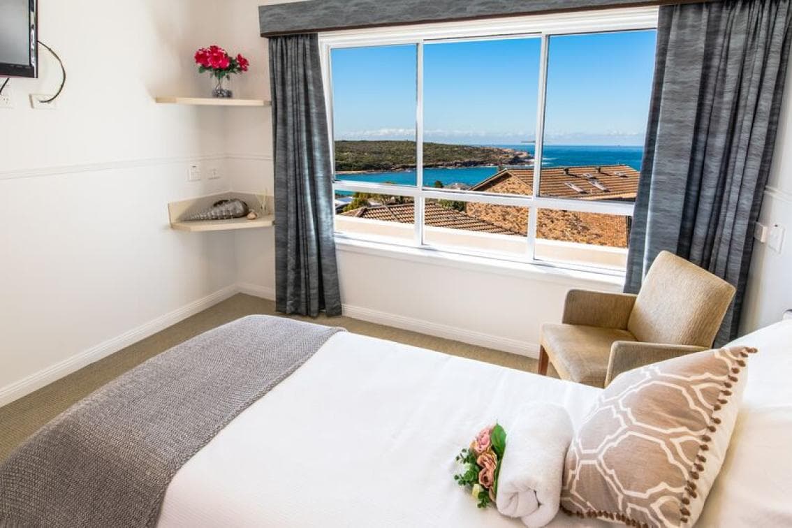Shared rooms – two residents per room Single electric bed Bed coverings, sheets, pillows and bedspread Bedside table with lockable drawer Built-in cabinetry with wardrobe and display shelves Wall-mounted flatscreen TV Air conditioning Windows with curtains and screens Emergency call button Bathroom Shared bathrooms are near bedrooms Vanity with cupboard and storage Non-slip flooring and handrails Emergency call button