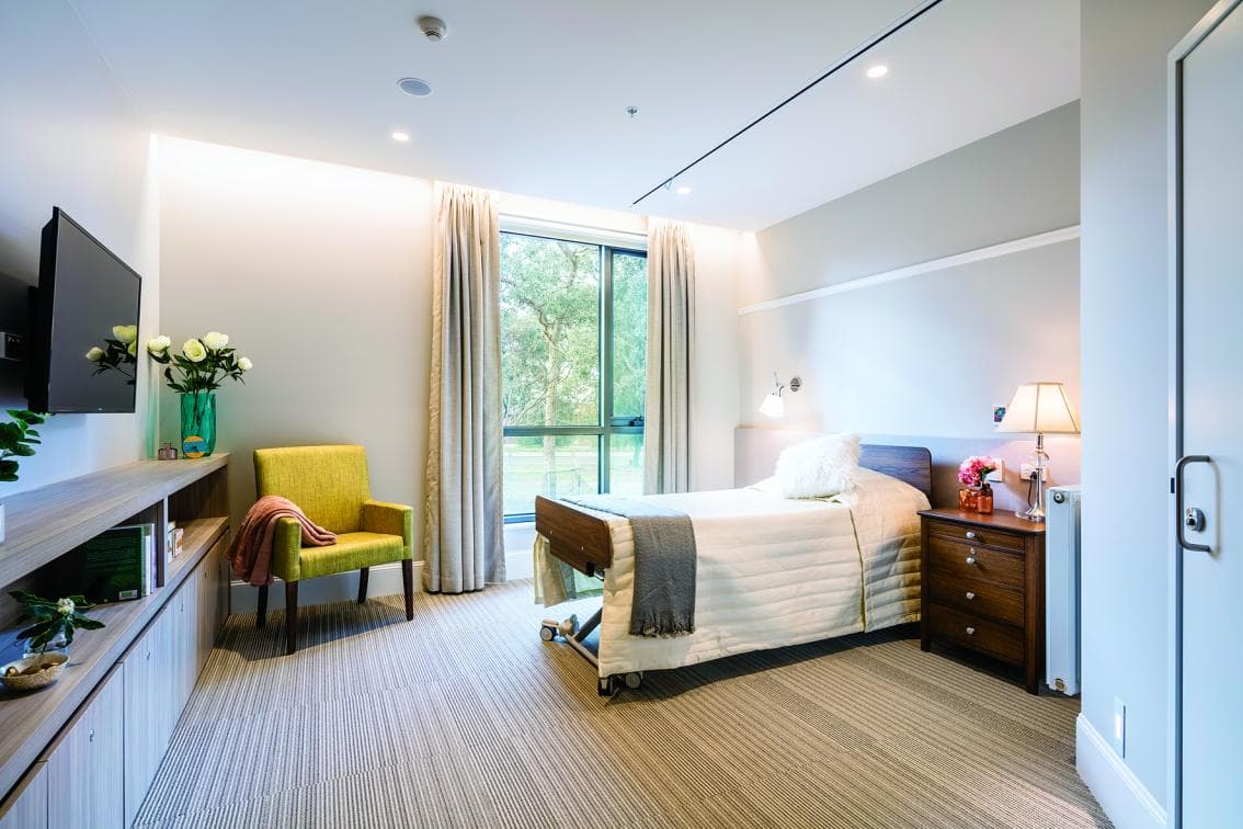 Our Wattle rooms are in excellent condition, featuring large windows that provide plenty of natural light and pleasant views to internal courtyards or surrounding landscapes. These rooms include an electronic high/low bed, a chair, a 40-inch flat- screen TV, an equipment ceiling track, individually controlled air-conditioning and hydronic heating. They have spacious private ensuites, and include built-in robes and secure lockable storage.