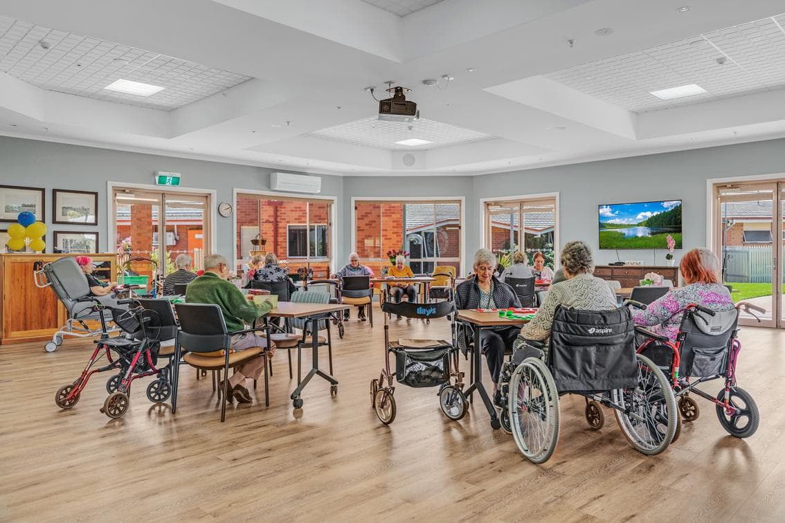 Koraleigh has been designed specifically to feature 3 designated areas, including a dedicated Memory Support Unit. The original rooms were constructed in 1993, with additional rooms added in 2016. The bedroom, furniture and fittings are in good condition. Bedrooms look out onto landscaped/garden areas. Rooms include: • electronic high low adjustable bed • built in double wardrobe • staff call points • landline telephone connection capability • Individual inverter reverse cycle air conditioner • large ensuite with vanity unit • handrails in the ensuite • windows are fitted with flyscreens. • bedroom floor is cushioned vinyl or carpet with non-slip vinyl in the ensuite • doorways are wide for ease of mobility