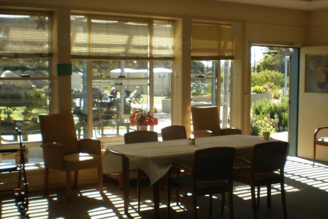 Wilson Lodge is a modern facility, with well-appointed rooms, excellent quality and condition, and curtains and blinds in very good condition. Rooms have views of the picturesque gardens. Bathrooms are large and light allowing easy access for residents who require mechanical lifting equipment. All rooms have comfortable beds with linen and remote control adjustment, bedside table with 3 drawers, wardrobe with drawers and robe space, visitors chairs, table, ceiling fan, television and telephone point, option to hang personal pictures and photos, floor heating and excellent lighting. Outside awnings to north facing rooms.
